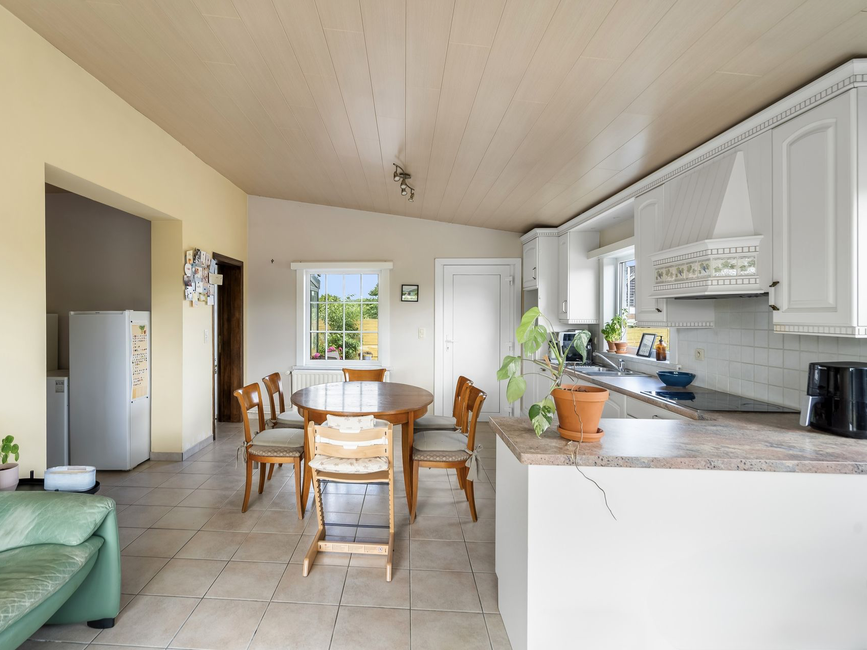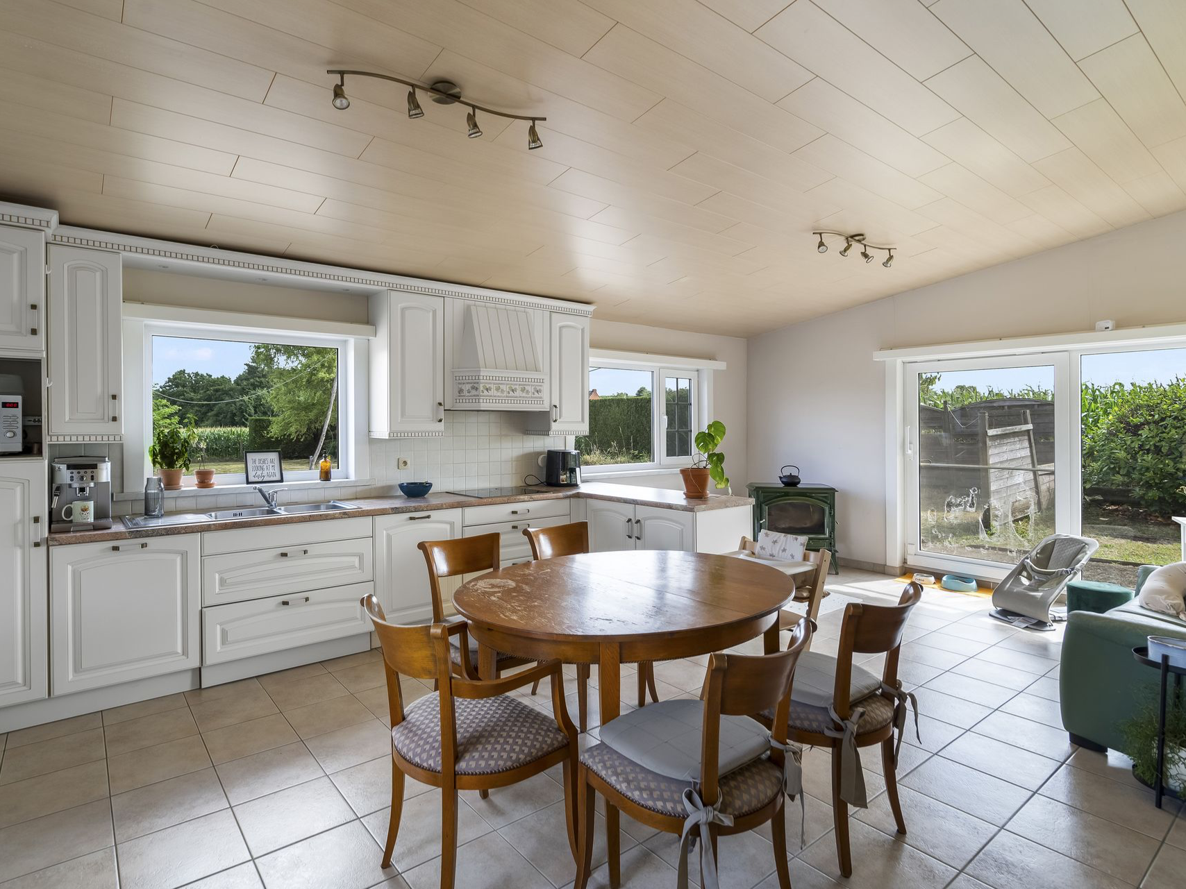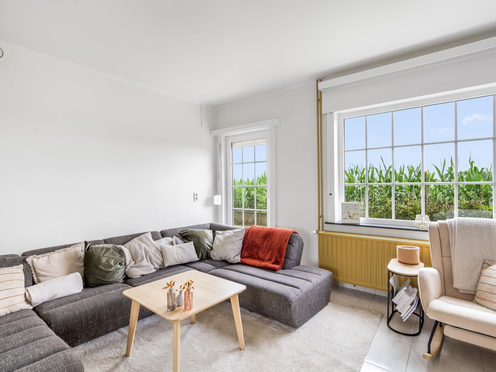Kom helemaal tot rust in de lichtrijke leefruimte van deze mooie woning die uitkijkt op de achterliggende velden.