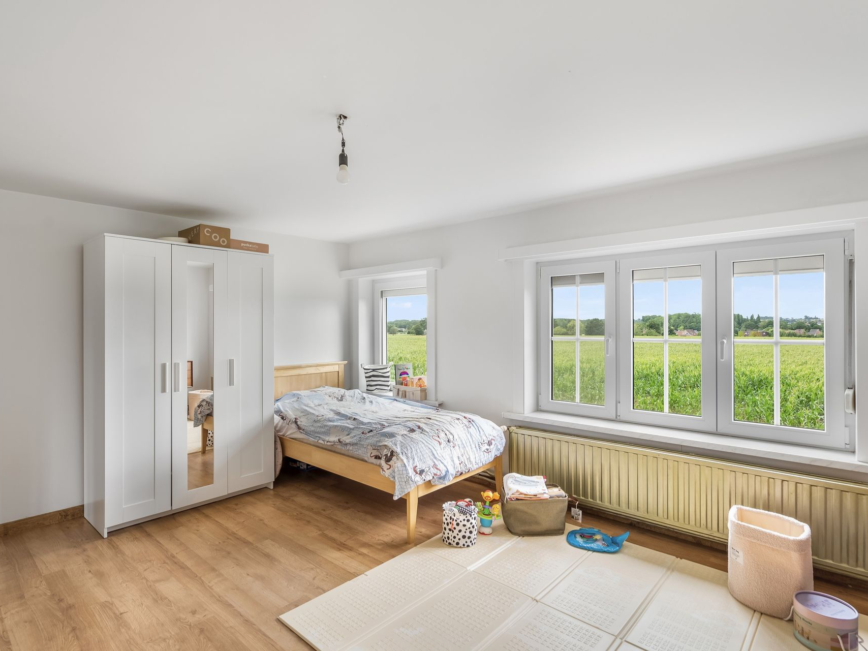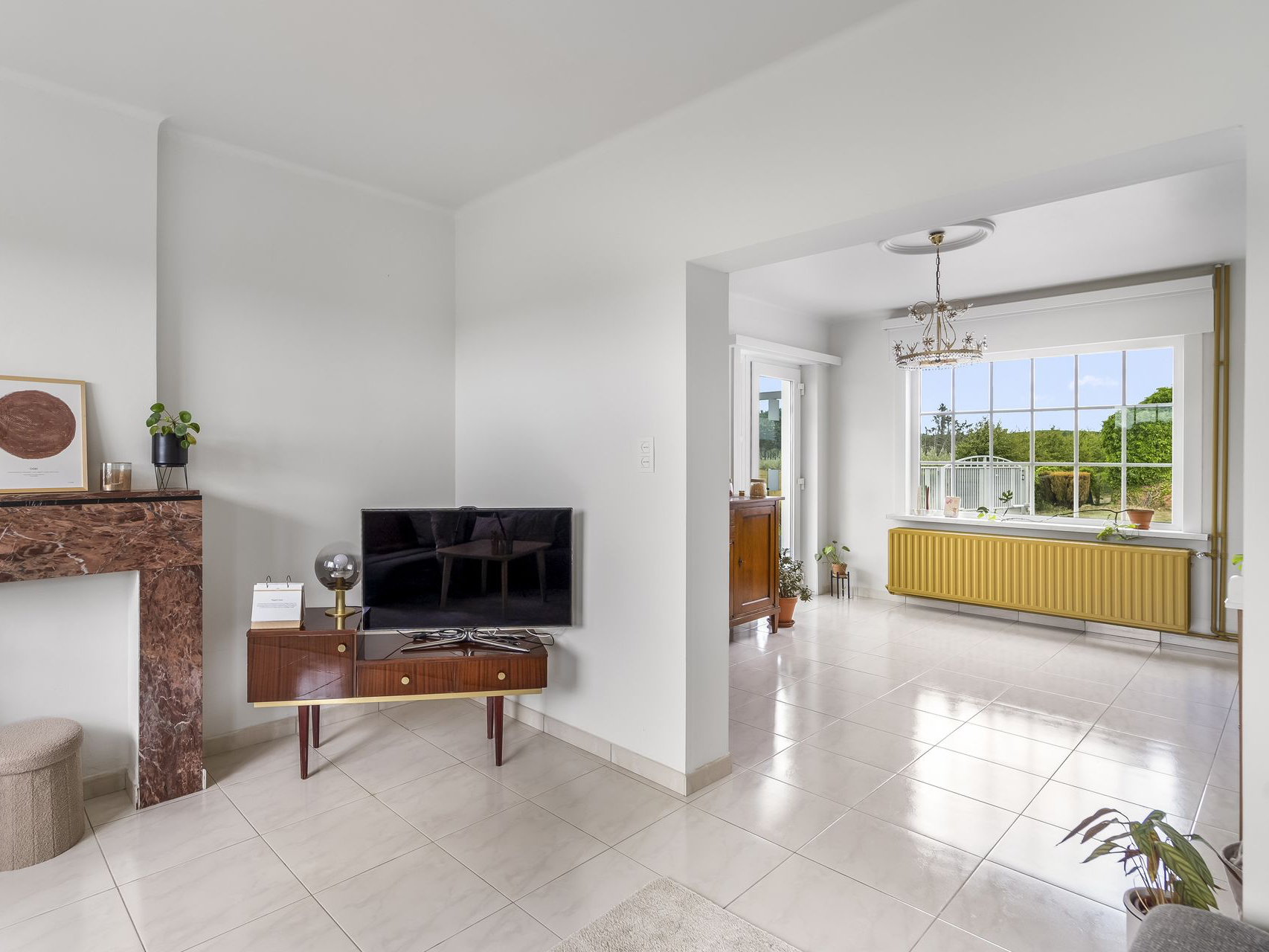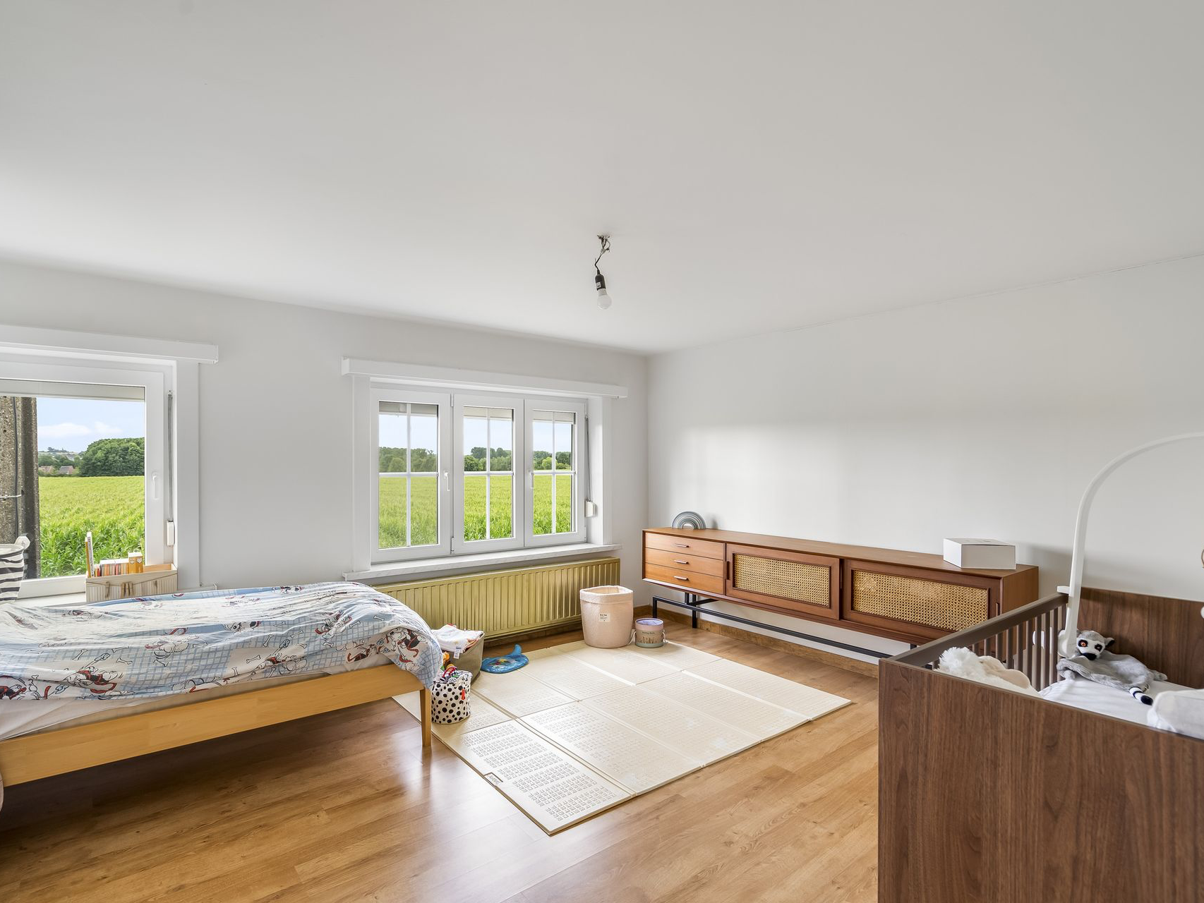 Kom helemaal tot rust in de lichtrijke leefruimte van deze mooie woning die uitkijkt op de achterliggende velden.